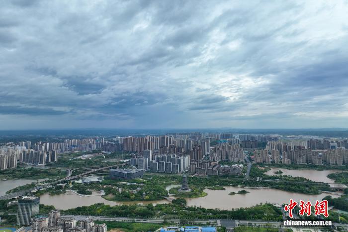 9月24日黄昏,授台风“桦添沙”教化,广东北宁郊区上空黑云稀布。(无人机相片)中新社记者 旧冠行 摄